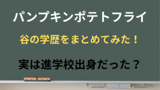 パンプキンポテトフライ谷さんの最新学歴まとめを紹介します。出身高校は兵庫県立神戸高校で、大学には進学していません。中学と小学校はWikipedia掲載情報をもとに、断定を避けてわかりやすく整理しました。進学校なのに金髪パーマだった話や、潔癖症で女子と手をつなげなかった学生時代のエピソードもチェックできます。