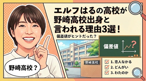 エルフはるさんの高校が「野崎高校ではないか?」と噂される理由は、ネットやテレビでの本人の発言、通学エピソード、そして学校の特徴から強く裏付けられています。